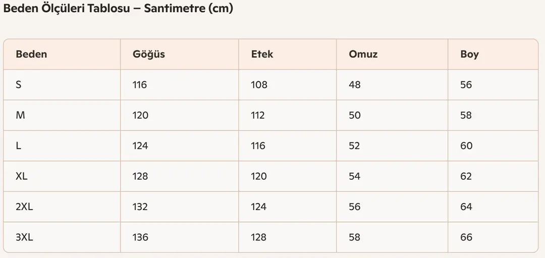 - Kumaş Yapısı: Polar (280 gr/m²) — sıcak tutar ve konforludur